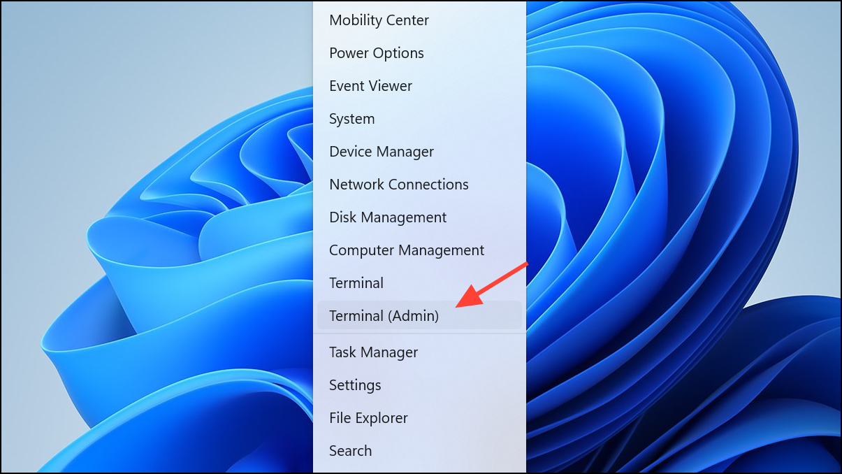 Step 1: Right-click the Start button and select "Terminal (Admin)" to open Windows Terminal with administrative privileges.