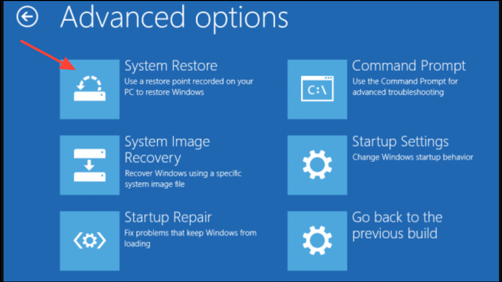 Step 1: Boot into WinRE and select Troubleshoot > Advanced options > System Restore.
