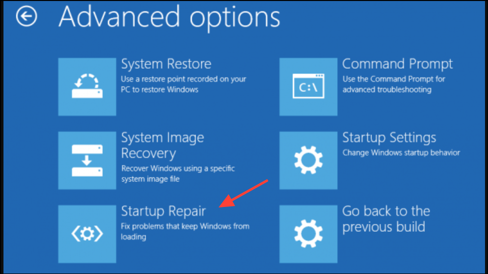 Step 2: In WinRE, navigate to Troubleshoot > Advanced options > Startup Repair.