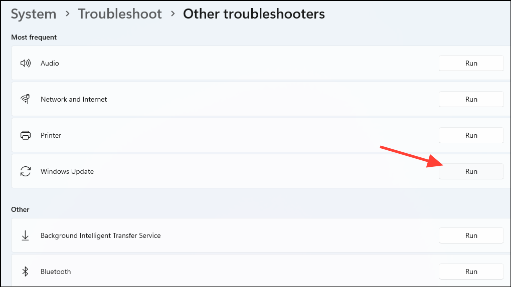 Step 3: Find Windows Update from the list, then click on Run. Follow the prompts provided by the troubleshooter to diagnose and correct issues.