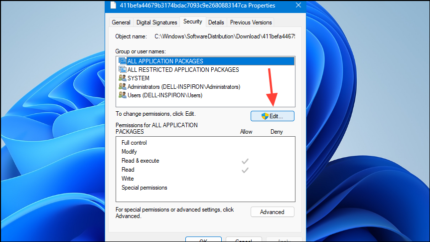Step 1: Right-click the problematic file or folder and select Properties. Navigate to the Security tab and click Edit.