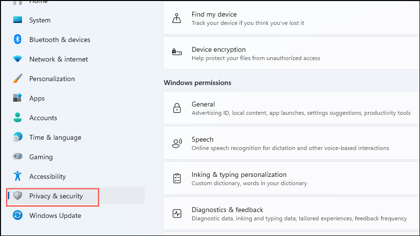 Step 1: Temporarily disable your antivirus and firewall software. For Windows Defender, navigate to Settings > Privacy & security.