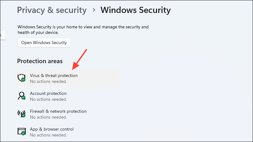 Step 2: Go to Windows Security > Virus & threat protection.