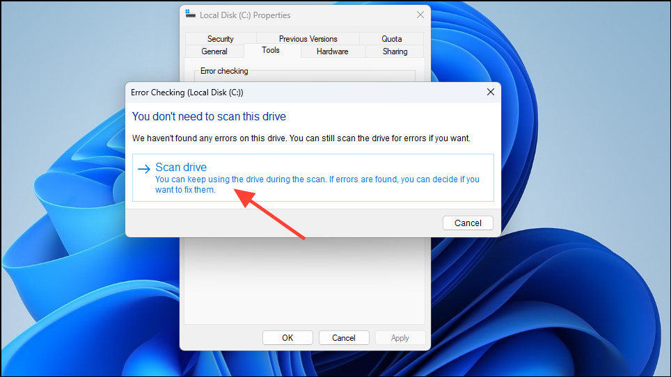- In the pop-up that appears, click on 'Scan Drive' and wait for the scan to finish.