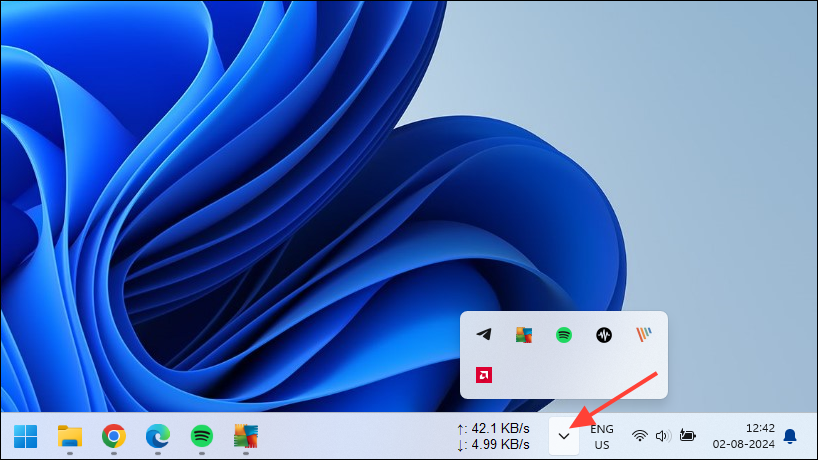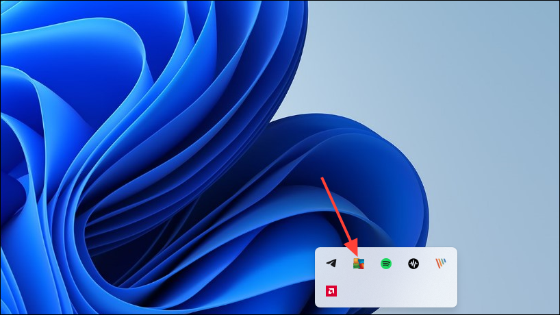 - Click on the taskbar overflow button that appears as an arrow on the right side of the taskbar and all hidden services will be visible.