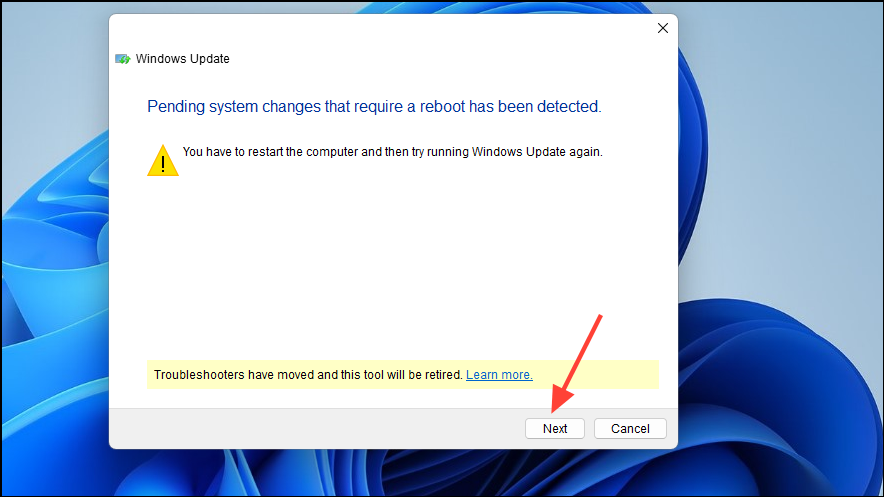 - Wait until the troubleshooter completes scanning for problems. Then click on the 'Next' button and follow the instructions that appear on the screen.