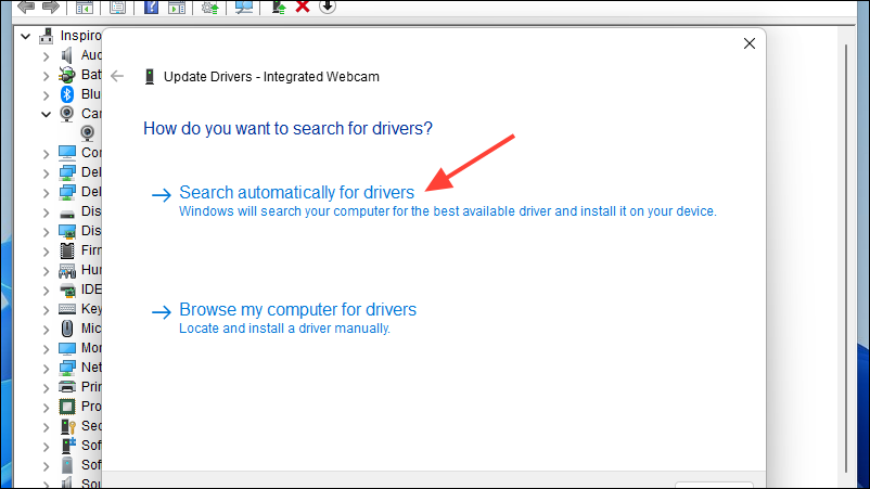 - Click on the 'Search automatically for drivers' option in the dialog box that appears.