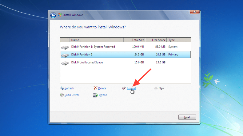 You can also change the directory where you are installing Windows and see if that fixes the problem. When you get to the screen where you select a partition for installing the OS, click on a different partition than the one where it was installed earlier. Make sure to click on the 'Format' option to format the partition before clicking on the 'Next' button.