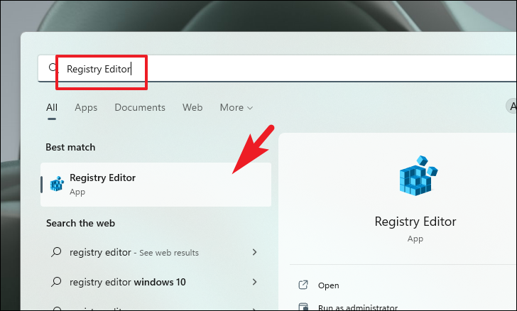 Step 1: Open the Registry Editor. Click on the Start Menu, type Registry Editor in the search bar, and select the 'Registry Editor' app from the results.