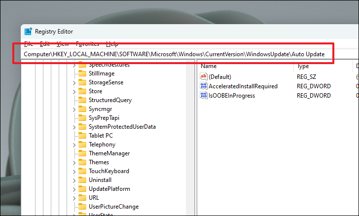 Computer\HKEY_LOCAL_MACHINE\SOFTWARE\Microsoft\Windows\CurrentVersion\WindowsUpdate\Auto Update