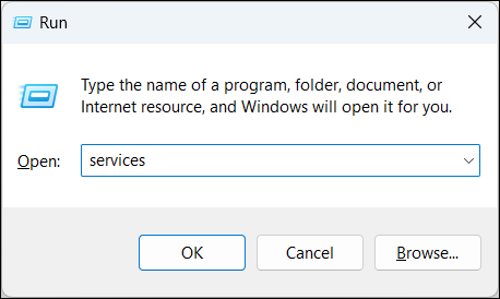 Step 1: Press Windows + R to open the Run dialog, type services.msc, and press Enter.