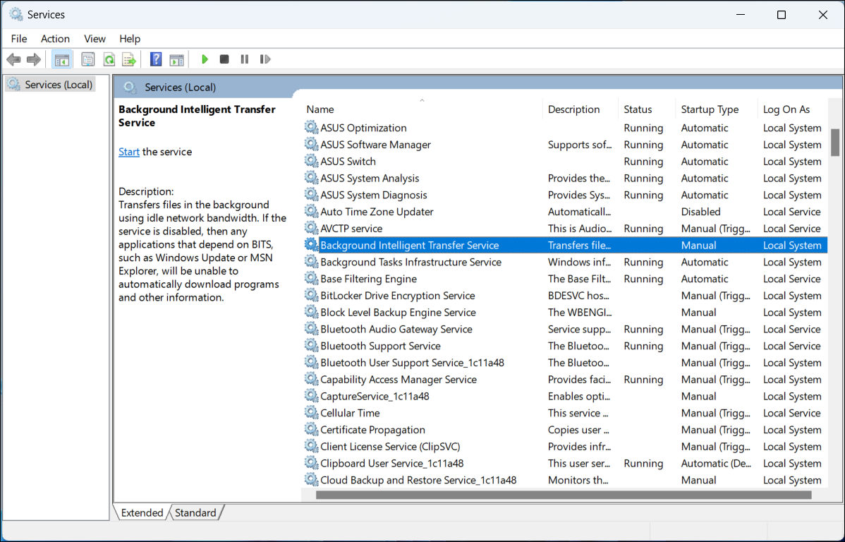 Step 2: Scroll down and locate Background Intelligent Transfer Service in the list.