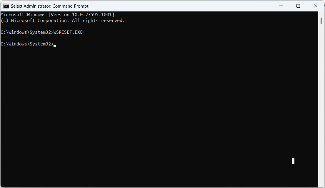 This command will reset the Microsoft Store app and clear its cache.