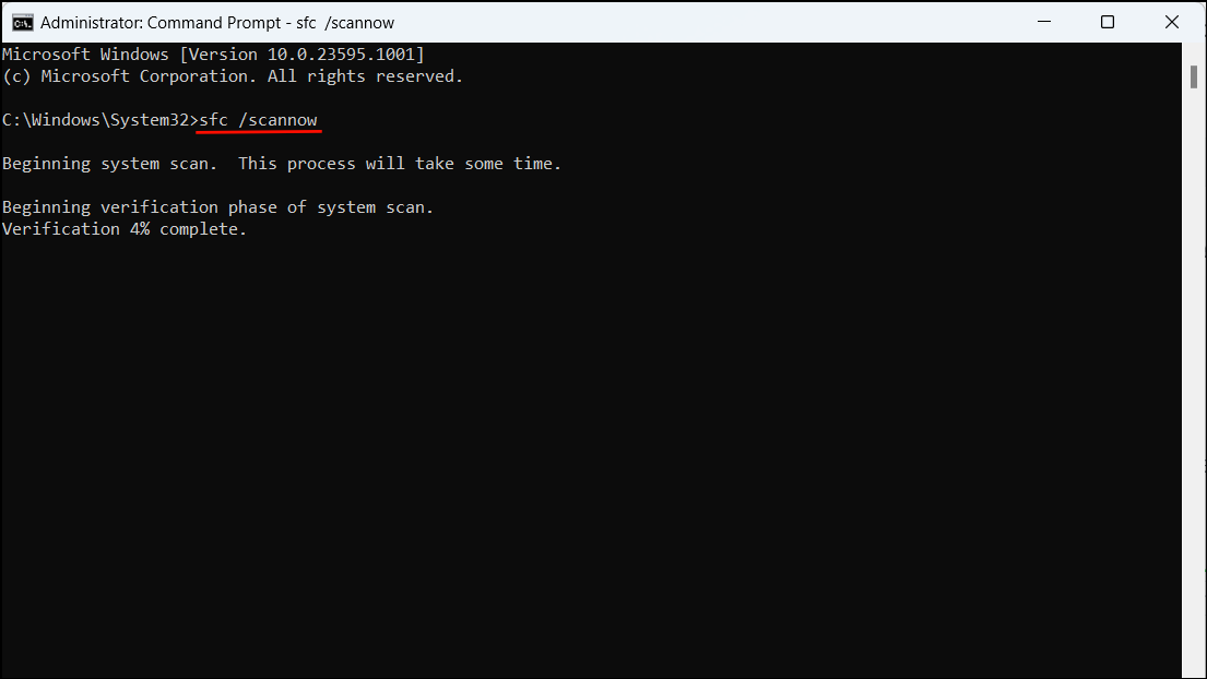 This command scans your system for corrupted files and repairs them.
