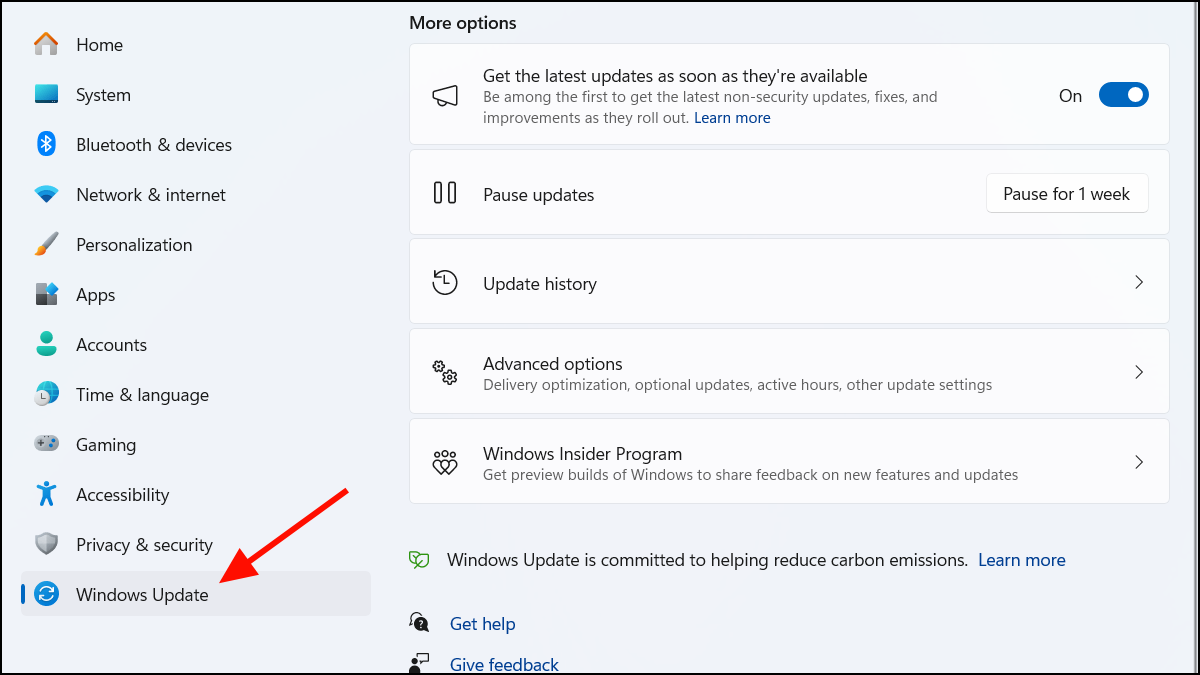 Step 2: Navigate to Windows Update in the left-hand menu.