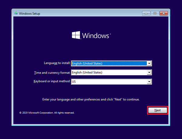 It will start the process of installing/repairing the Windows. Select your time zone, language and currency, and keyboard input method. Then click on the ‘Next’ button.