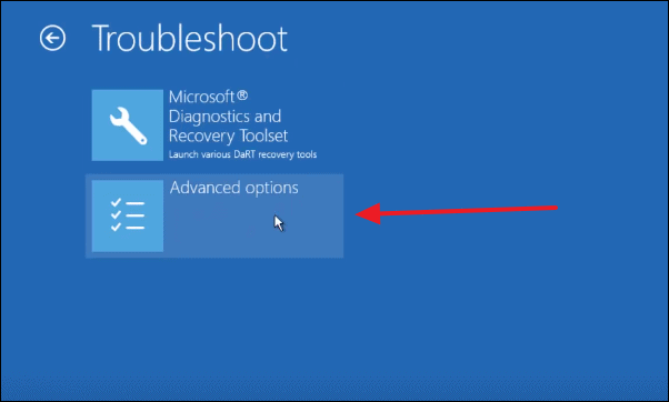 Now select ‘Advanced options’ to see the ‘Automatic Repair’ option.