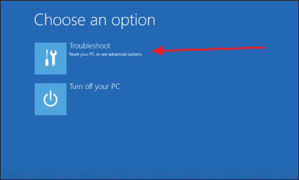 Select ‘Troubleshoot’ from the options you see after clicking on ‘Repair your computer.’