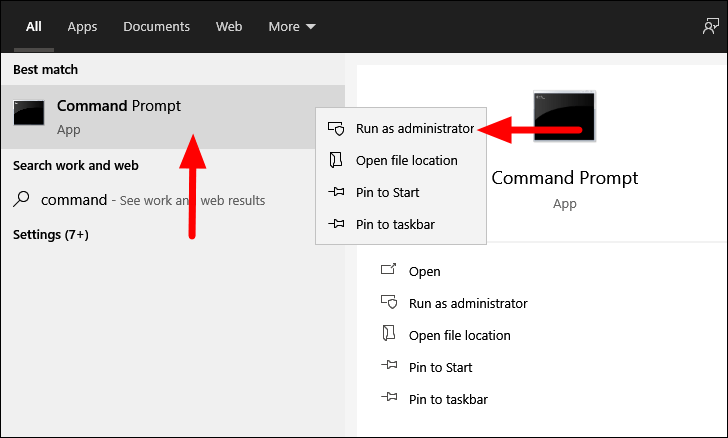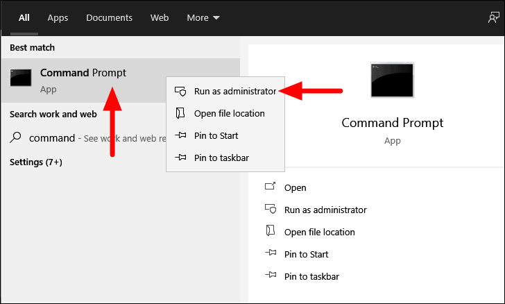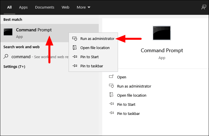 To run the ‘Check Disk’ scan, search for ‘Command Prompt’ in the ‘Start Menu’, right-click on the search result, and then click on ‘Run as administrator’. Next, click on ‘Yes’ in the confirmation box that pops up.