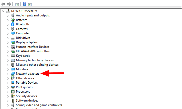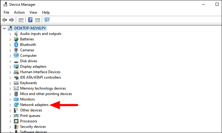 In the ‘Device Manager’ window, locate the ‘Network adapters’ option and double-click on it to expand and view the devices under it.
