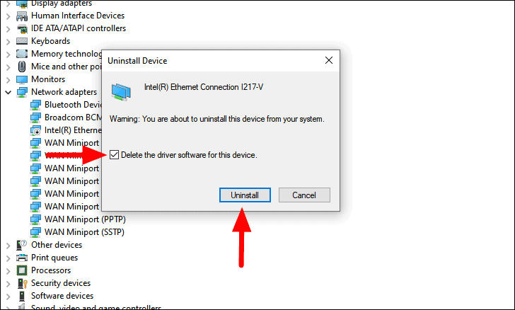 After you have uninstalled the driver, restart the computer. After the computer restarts, Windows will automatically reinstall the driver. Now, check if the ‘Ethernet doesn’t have a valid IP configuration’ error is fixed.