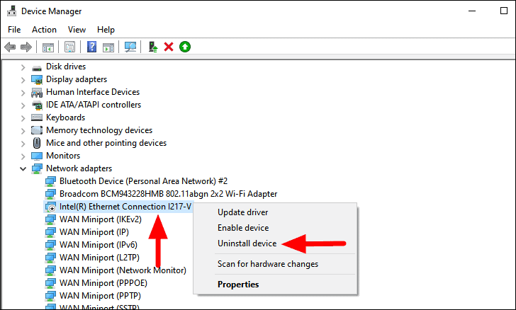 You might be encountering the ‘Ethernet doesn’t have a valid IP configuration’ error because of a corrupt ‘Network’ driver. Reinstalling the driver will fix the error in this case. As intricate as it may sound, the process of reinstalling the driver is very simple and quick.