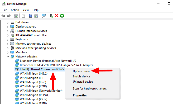 If reinstalling the ‘Network’ driver didn’t fix the error, it could be because the driver you are using is outdated. Therefore, you should update it to the latest version.