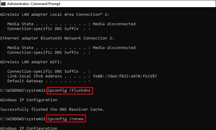 Now, check if the error is fixed and an IP address has been assigned to your computer.
