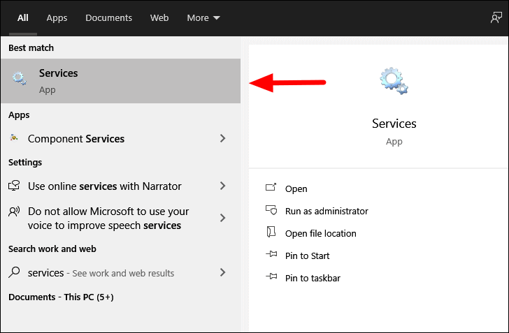 To enable DHCP, search for the ‘Services’ app in the ‘Start Menu’, and then click on the search result to launch it.