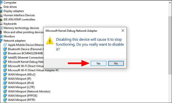 After you have disabled the driver, check if the error is fixed and you are able to connect to the internet.