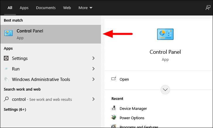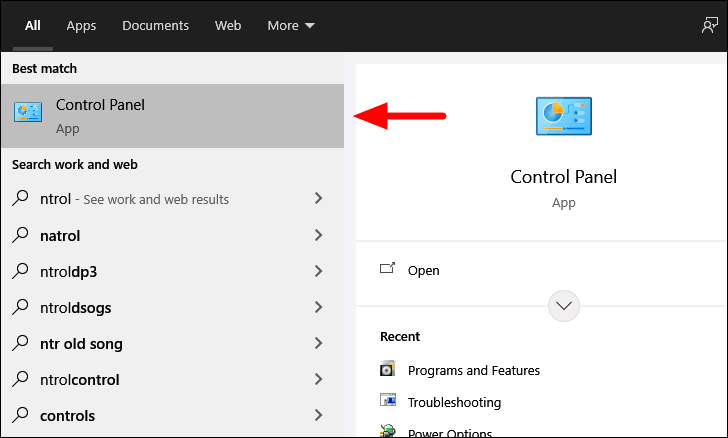 To disable ‘Fast Startup’, search for ‘Control Panel’ in the ‘Start Menu’, and then click on the search result to launch the app.