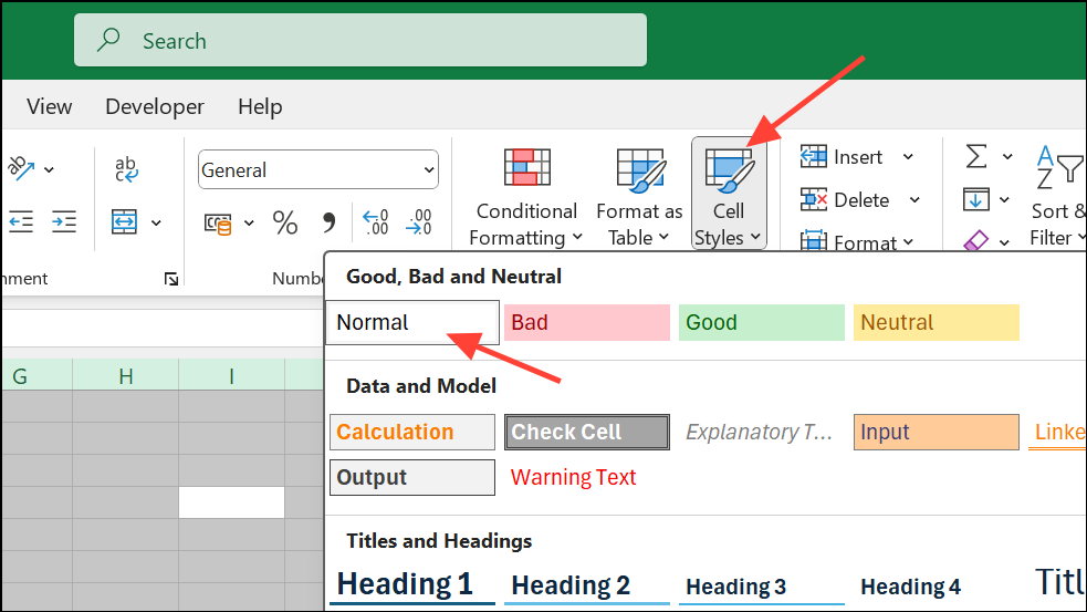 Step 3: If the error persists, check for excessive standard formatting (such as fill colors, borders, or fonts) by selecting the entire worksheet (Ctrl + A), then on the Home tab, click “Cell Styles” and select “Normal” to reset formatting.