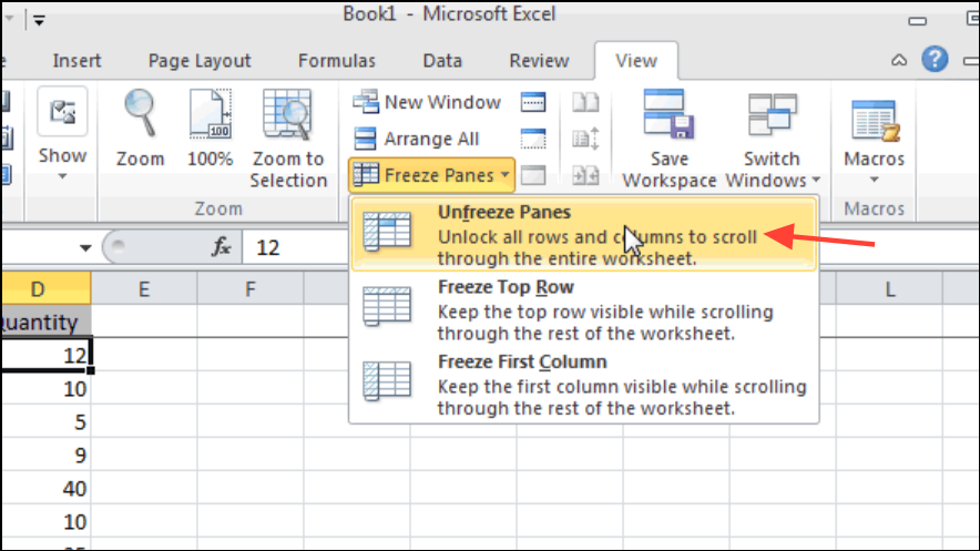 Step 2: Navigate to the View tab and select “Unfreeze Panes.” This ensures that frozen rows or columns aren’t restricting your ability to add new cells.