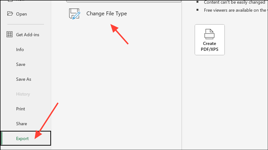 Step 1: Open Excel and select File > Export > Change File Type. Choose the correct file format for your version of Excel (typically .xlsx for Excel 2007 and newer, .xls for older versions).