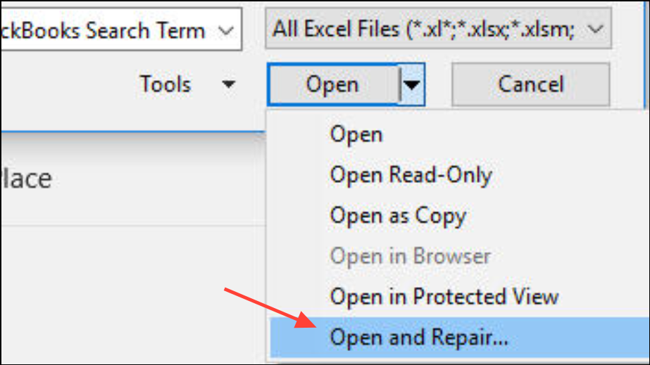 Step 2: Click the arrow next to the Open button, then choose Open and Repair. This built-in tool attempts to fix corruption and recover lost formatting.