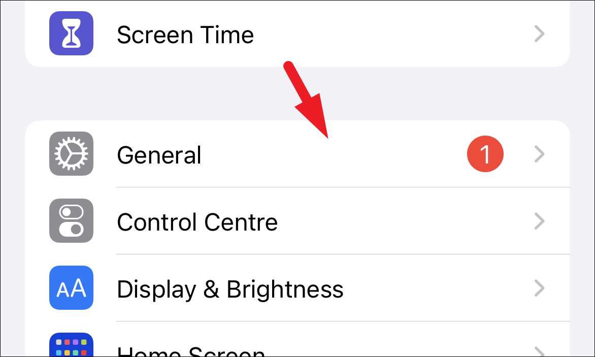 Then, from the ‘Settings’ screen, locate and tap on the ‘General’ tile to continue.