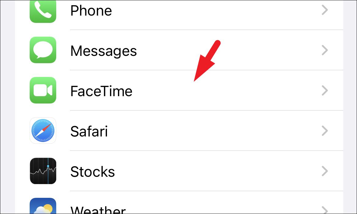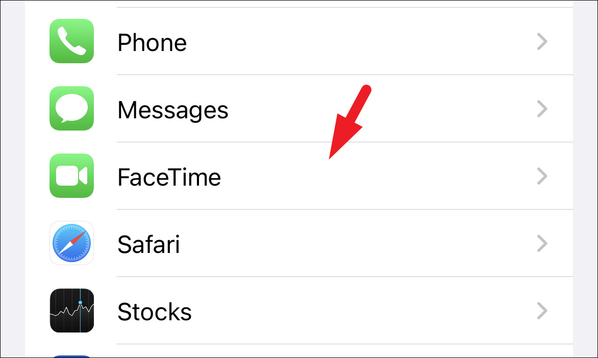 Next, on the Settings screen, scroll down to locate and tap on the ‘FaceTime’ tile from the list to proceed.