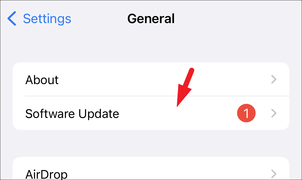 Next, from the ‘General’ settings screen, locate and tap on the ‘Software Update’ tile to proceed.