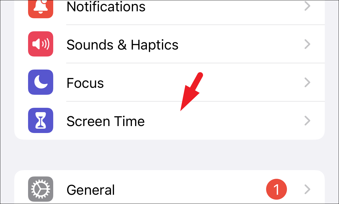 Then, from the ‘Settings’ screen, locate and tap on the ‘Screen Time’ tile from the list to continue.