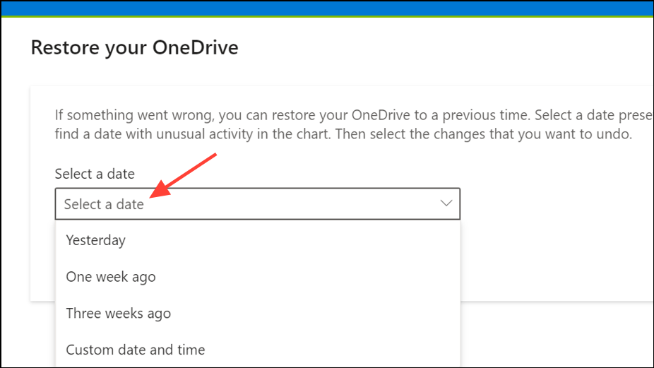 Step 1: If you have a Microsoft 365 subscription, access the Restore your OneDrive feature by visiting onedrive.live.com/?v=restore.