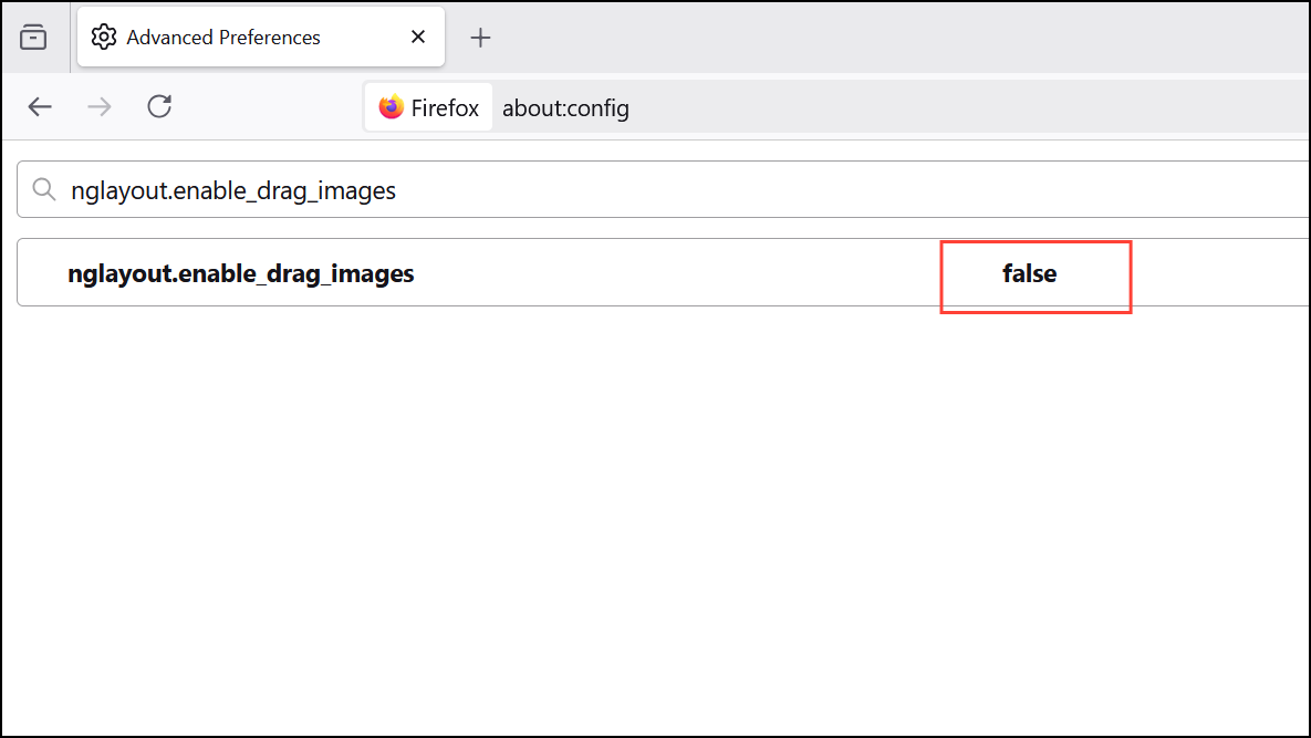 Change the nglayout.enable_drag_images Setting