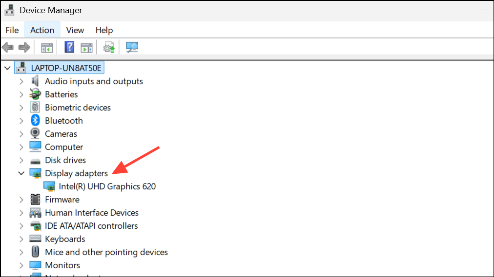 Step 2: Expand the Display adapters section to see your GPU model.