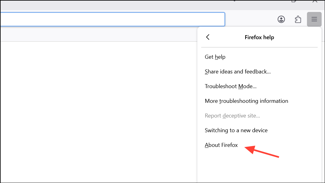 Step 1: Open Firefox and click the menu button in the top right corner. Select Help and then choose About Firefox.