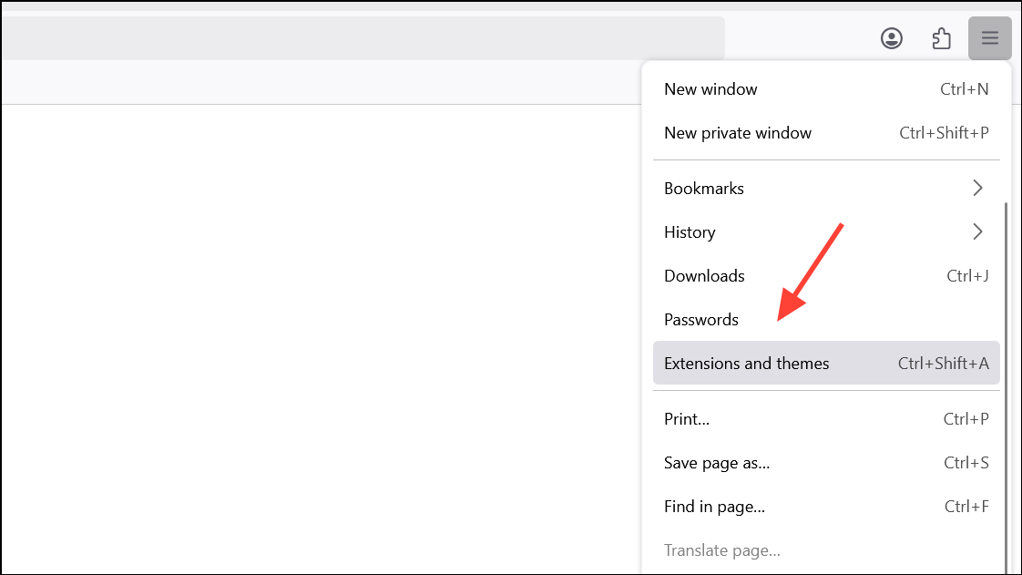 Step 1: Click the menu button, select Extensions and Themes, then review your installed extensions and themes.