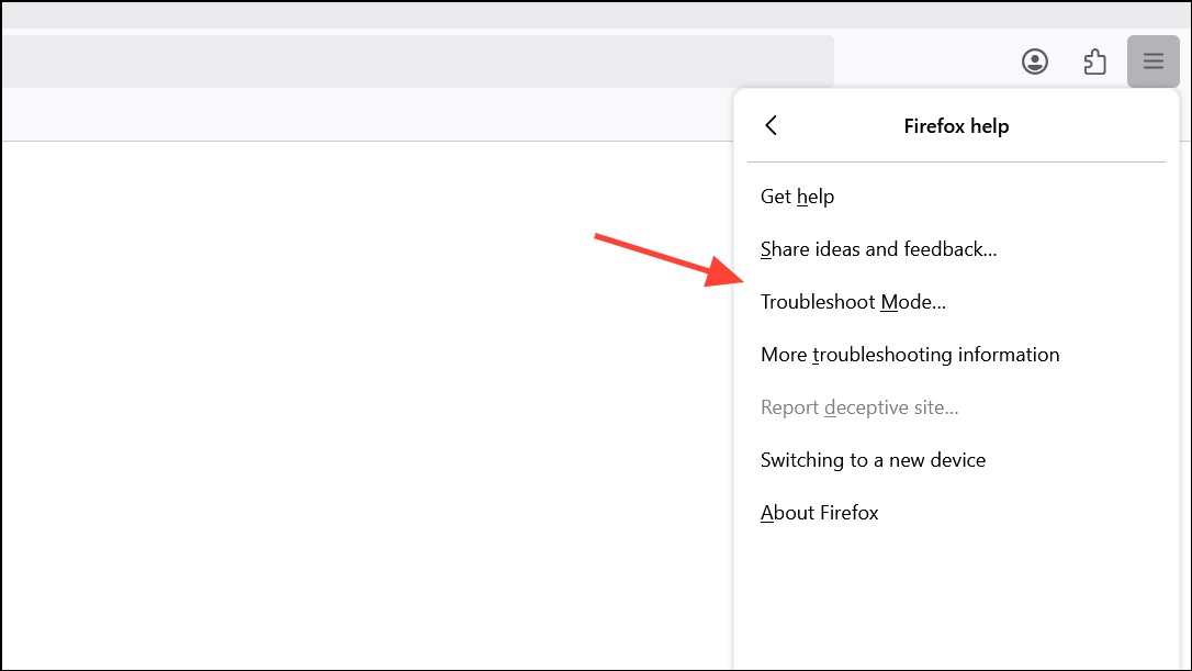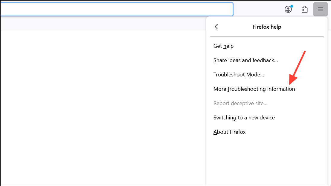 Step 1: Click the menu button, go to Help > More Troubleshooting Information.