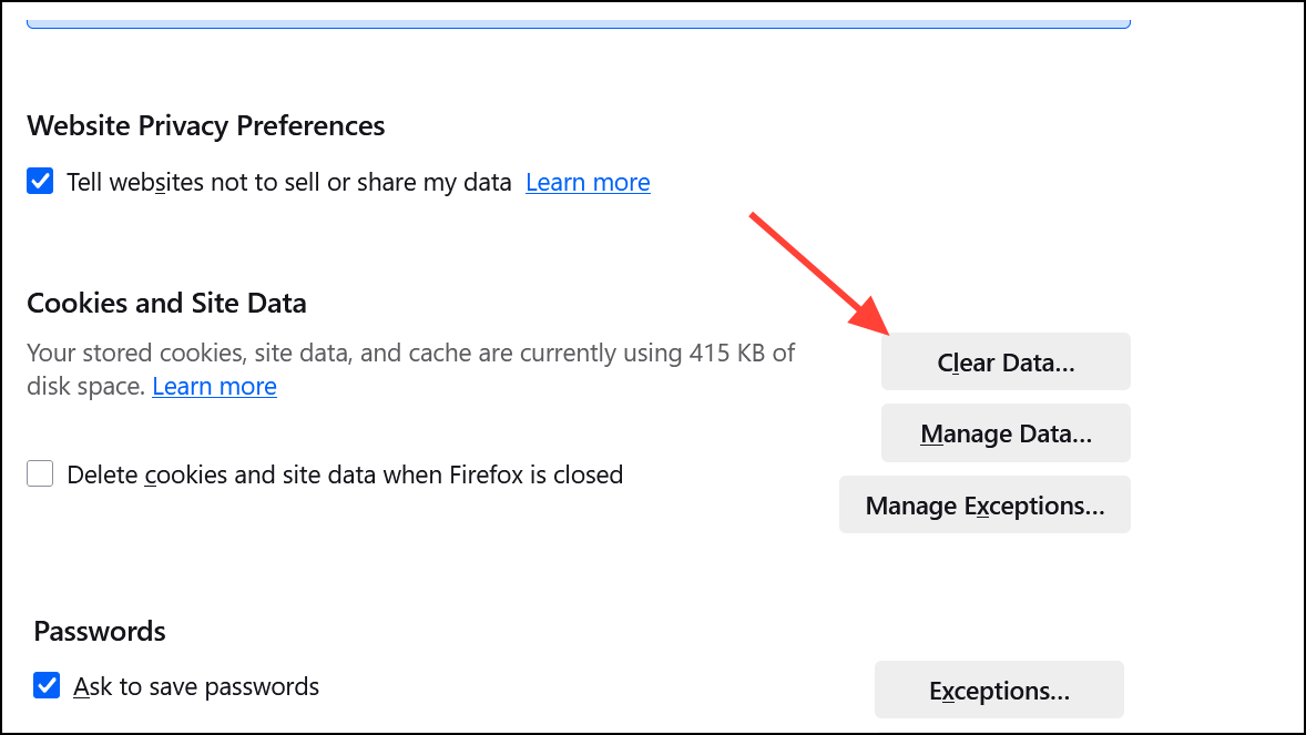 Clear Firefox Cache and Site Data