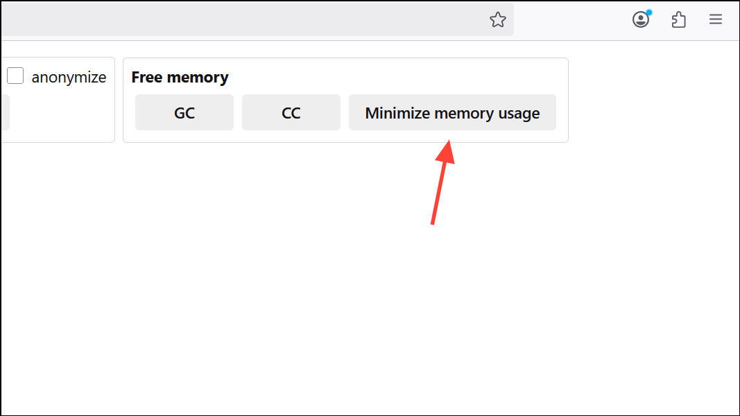 Step 3: Use the Minimize memory usage button to prompt Firefox to release unused memory.