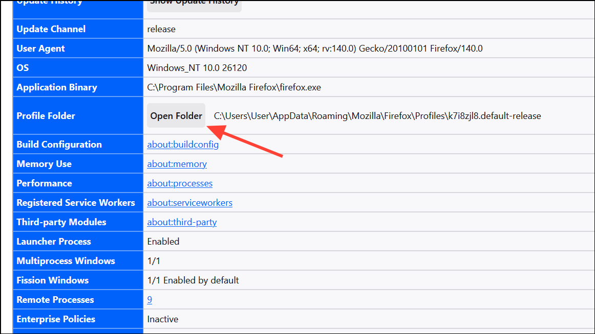 Step 1: Open Help > More Troubleshooting Information. Under Application Basics, find Profile Folder and click Open Folder.