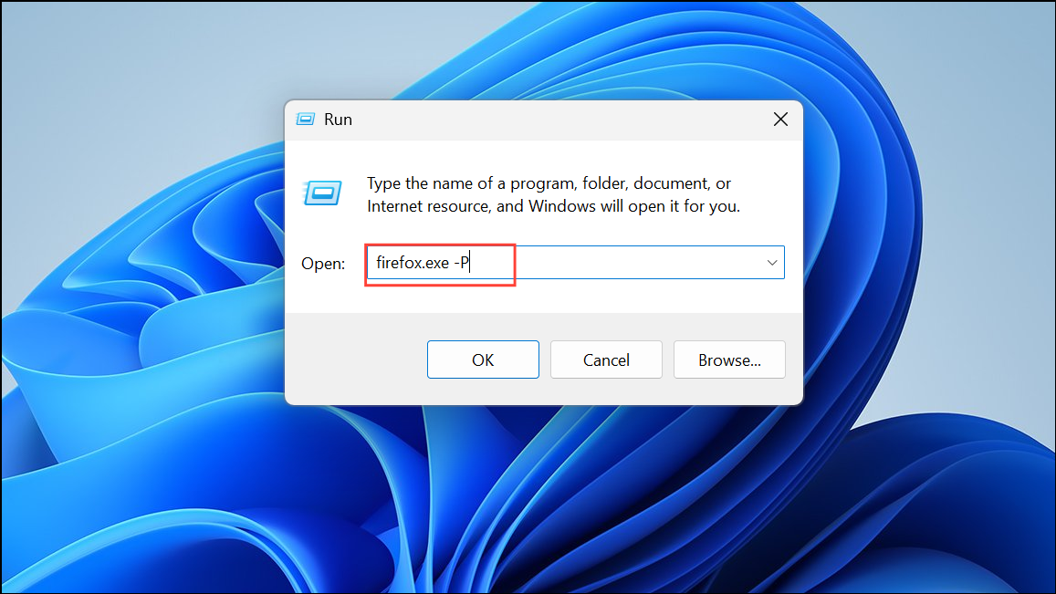Step 1: Open the Profile Manager. On Windows, press Windows + R, type firefox.exe -P and press Enter. On Mac or Linux, run firefox -P from a terminal.