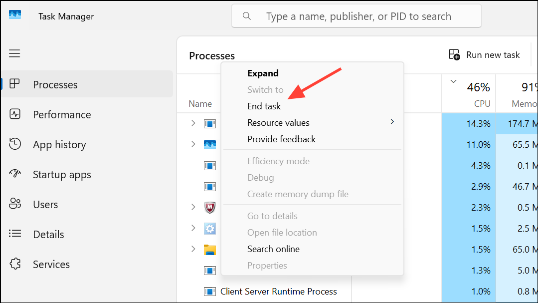 Step 2: In Task Manager, locate any running firefox.exe processes. Select each one and click End task to ensure Firefox is fully closed.